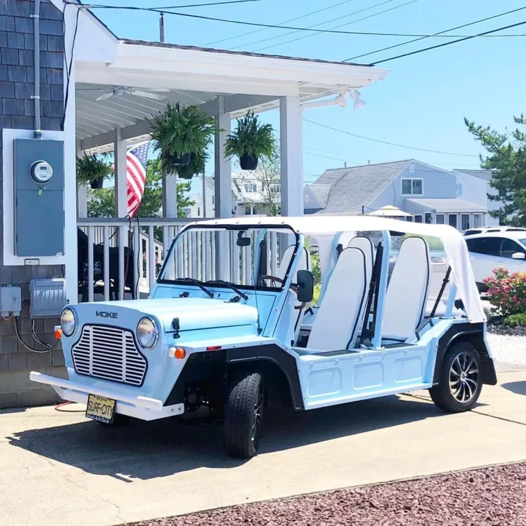 Now available with an 80-mile battery range and a speed up to 45 MPH, the Moke is built in the USA and engineered for coastal communities, resort towns, and luxury enclaves.