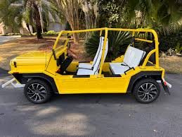 As of September 2025, we have upgraded to a newer, faster Moke with speeds up to 45 MPH and a lithium-powered battery with a range of up to 80 miles. This enhances our already improved Moke: We made the car bigger, wider and stronger. We raised the wheel from a 13-inch wheel to a 14-inch wheel, so it’s taller. We redesigned the windshield so the glass is larger, stands across farther and is higher. We implemented a five step E-Dip process to control the quality of the paint. We also do undercarriage rust proofing to prevent corrosion. Plus, LED headlights and a backup camera.